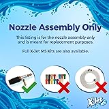 - Experience unparalleled cleaning power and efficiency with this external injection nozzle designed for pressure washers. Its customizable spray pattern ranging from 0 to 60 degrees ensures exceptional results on any surface. Effortlessly switch between soaping and rinsing, streamlining your cleaning process and maximizing productivity. With a reach of up to 40 feet or more, this nozzle eliminates the need for ladders or lifts, enhancing safety and convenience. Safeguard your pressure washer investment with the X-Jet M5's innovative external injection system, protecting internal components by drawing cleaning solutions from a separate container. Please note this listing is for the X-Jet M5 Nozzle Only and EXCLUDES the hose assembly and color-coded proportioners included in a full X-Jet M5 Kit. Upgrade your pressure washer setup today and achieve outstanding results with this reliable, high-performance nozzle.