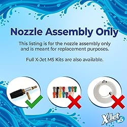 Powerful Cleaning Performance With the X-Jet M5: Achieve exceptional results with this external injection nozzle for pressure washers, featuring a customizable spray pattern from 0 to 60 degrees. Clean any surface effortlessly and efficiently, thanks to its versatile design. Seamless Switching Between Soaping and Rinsing: Simplify your cleaning process with the X-Jet M5 Nozzle. Enhance productivity and save time by employing the same nozzle for soap application and rinsing. Heightened Safety and Convenience: Clean hard-to-reach areas without the need for ladders or lifts using the X-Jet M5. Confidently tackle high surfaces with a reach of up to 40 feet or more based on your pressure washer's specifications. Help Protect Your Pressure Washer: Help prevent potential damage to your pressure washer with the X-Jet M5 nozzle and external injection system. This innovative system safeguards your investment by drawing cleaning solutions from a separate container, bypassing your pressure washer's internal components. Nozzle Only: This high-quality nozzle delivers exceptional performance, but please note that it excludes hose assembly, color-coded proportioners, and an instruction manual. Upgrade your pressure washer setup with this reliable nozzle and achieve outstanding results in a variety of cleaning tasks.