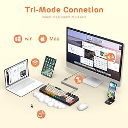 【 BT5.0/2.4G/USB-C 】 Bluetooth keyboard mode:FN+1, FN+2, FN+3;wireless mode: FN+4; wired mode: FN+5; low voltage, charging indicator light/mode indicator light (blue,purple,cyan,green).This custom keyboard has 1 USB and provides a Type C to USB data cable,which can easily switch between 3 different wireless devices.It is compatible keyboard for MAC/Win dual systems and has unlimited use,allow you to switch between tablets,laptops,and phone. 【Hot Swappable Clicky Keyboard】 Hot swappable mechanical keyboard PCB allow you to freely replace 3-pin switches without soldering issues,not only extending the lifespan of key switches,but also providing more possibilities for DIY enthusiasts.The response speed of the keyboard mechanical blue optical switch is 150 times that of traditional mechanical switches.The noise reduction cotton further reduces the hollow sound of the keyboard,enjoy the perfect gaming and typing experience at night. 【4000mAh Long Battery Life】 Energy-saving large battery that can be used for up to 200 hours (with backlight turned off) .By placing the wireless backlit keyboard in a low-power state when not in use,achieving energy conservation and environmental protection. The newly added four indicator lights can display the status of the travel keyboard more clearly.Whether you use the programmable keyboard in the first hour or a few weeks after charging, all will provide the same seamless experience. 【Cloud Keyboard Wrist Rest 】 Made of high-quality memory foam material that conforms to your specific wrist contour, providing extraordinary comfort and durability.The outer layer is wrapped in durable and washable PU material,ensuring that your palm rest remains hygienic and aesthetically pleasing for the next few years.It is portable,versatile,and maintenance free, making it the perfect gaming accessories for anyone who wants to maximize comfort and efficiency. 【100 Keys Compact Layout & Customizable RGB Lighting】The 98% rgb keyboard features a compact layout with numpad, providing an effective solution to limit cable clutter and provide more workspace,the perfect key spacing allows for accurate typing without any fatigue.Customizable RGB lighting can adjust the color, brightness, and flow rate of each button, providing you with cool and charming lighting effects, making playing games or typing more enjoyable at night.