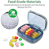 【 Portable size for traveling:】Size of this portable pill box is 2.79x2.01x1.09inches, can be easily put in your purse, suitcase, backpack, handbag, or your coat pocket, without taking up space, very convenient for a trip 【Easy Open to Use】The anti-spill pill box is equipped with a buckle design which can prevent it from opening even when it is dropped, so you can worry that the pill box will be opened in your bag 【3 COMPARTMENTS Disassembled combination 】each compartment has 3 compartments,pill box 2 isolation boards can be disassembled, suitable for those who take 2-4 pills at a time. The daily pill box ensures the dosage in the morning, noon and evening, and the design is just right 【MOISTURE PROOF & PROTECT PILLS 】: With the thickened silicone ring surrounded, can keeps your travel pill case closed tightly and prevent your pill from moisture and dust, so you can take fresh pills every day and say goodbye to damp pills 【Versatile】 - This travel pill box can store pills and other small items, suitable for hunting, fishing, camping, adventure, outdoor lifesaving and other outdoor activities or family,and even coat pocket. If you encounter any quality problems with our , please contact us