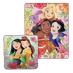 Northwest Disney Princess Cloud Stretch Pillow and Silk Touch Throw Blanket Set, 14" Pillow, 40" x 50" Blanket, Floral Smiles