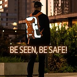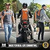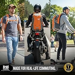 Reflective Motorcycle Backpack – Hi Viz EDC Commuter Bag for Riders, Night Travel, and Daily Use with Helmet Holder, Laptop Compartment, Ventilated Back, Urban Gear (orange backpack)