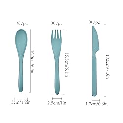 - SPECIFICATIONS Package includes: 7Pcs knives, 7Pcs spoons, 7Pcs forks Material: wheat straw + starch + PP Spoon length: 6.5 inch Fork length: 6.1 inch Knife length: 7.3 inch FEATURES 1. Using this set of reusable tableware will reduce the use of disposable plastic tableware. 2. Made from Natural wheat straw + starch + pp, without any harmful ingredients, both adults and children can use it with confidence. 3. The picnic cutlery set is small and light, easy to carry and store. It can be placed in a lunchbox, backpack, purse or other bag. 4. With a minimalist design and smooth edges, this travel cutlery is ergonomically designed to provide you with a refined dining experience. 5. The simple design of these reusable tableware looks both fun and elegant at your table. Our dinnerware sets are perfect for everyday use, parties, birthday parties, camping, travel, and more. 100% SATISFACTION GUARANTEE If you have any doubts or are not satisfied with the flatware set, please feel free to contact us and we will provide you with the best solution, your satisfaction is our main concern.