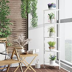 VIMBER Corner Shelf, 5-Tier Corner Bookshelf, Industrial Corner Ladder Shelf, Modern Display Shelf for Living Room, Bedroom, Kitchen, Home Office, White UJSJ001W