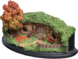 - J.R.R. Tolkien’s The Hobbit, brought to the big screen in an epic trilogy.Weta Workshop was thrilled to return to Middle-earth once again, contributing design, specialty props and specialty costumes to all three films.This gorgeous little environment is an exacting miniature replica of the movie set that can be visited at Hobbiton in Matamata, New Zealand. It was designed by the same artists and craftspeople who worked on the movie.In a hole in the ground there lived a hobbit. Not a nasty, dirty, wet hole. It was a Hobbit Hole, and that means comfort.Bright round doors in summery hues dot the lush, grassy hillsides of Hobbiton like wildflowers. Behind each doorway, comfortably appointed burrows wind into earth: each one home to a Hobbit, or a family of the Shire’s rosy-cheeked little-folk.Every Hobbit Hole is unique, expressing the personality of its inhabitants with colour, prettily adorned gardens, furniture, and the rustic debris of everyday life.An unpainted front door sets this home apart from the rest, but it is no less cosy. Capitalizing on the natural earthen tone of the front door, a warm autumnal hue peppers the surrounding trees and ivy, creating a subtle yet inviting abode.Features:Easy to display – just 6” wideAn exact replica of the real Hobbit Hole at the Hobbiton movie setComplete your Shire and collect the entire range.“Because of the relationship we have with all the production parts of the process, we access to everything from concept drawings to set plans, which is really handy when making things like Hobbit Holes.”- Leonard Ellis – Sculptor & Model Maker, Weta WorkshopDimensions: (W x H x D) 15.2 cm x 18.7 cm x 6 cmAges: 14-99Country of origin: China*Please note: Images are of a pre-production prototype. Each piece is painted by hand and some variations will occur. A universal power adapter will be included.