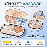 Travel Pill Organizer, 2 Pack Portable Pill Box 7 Day Small Pill Case Moisture Proof Daily Medicine Vitamin Container for Vitamins, Supplements Medication Tracker Travel Essentials (Small+ Large)