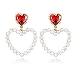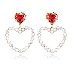 Cute Heart Pearl Earrings: Valentine earrings in the shape of heart as the main shape, the combination of red crystals and small white pearls, romantic atmosphere exclusive to Valentine's Day, symbolizing the sweetness and sincerity of love, wear the pearl heart earrings as if the love will be carried with you, so that the love will shine between the ears Details about Pearl Earrings: Heart earrings for women are made of high quality materials, fine workmanship and the appearance is exquisite and noble, measuring 1.47 inches x 0.96 inches, weight of heart dangle earrings is 6 g, the size of the white pearl earrings is suitable and lightweight so it won't be a burden on your ears and can be worn comfortably for a long time. Our pearl drop earrings ensure the safety of sensitive ears and provide comfort and confidence to the wearer Versatile Fashion Style: The design of pearl heart hoop earrings is simple and fashionable, whether it is with a gorgeous evening dress, attending a romantic Valentine's Day dinner, showing the elegance; or with a simple combination of everyday casual wear, adding a touch of elegance, can be easily mastered, red heart earrings perfectly suited to various occasions, let love shine at any time Good Gift Choice for Women: The pearl statement earrings are very suitable as galentines day gifts, whether it's for your love, mother, friends or give for yourself, you can rest assured that our pearl jewelry are suitable for both gentle and quiet girl and mature and elegant ladies, adding a chic touch to your look, they are the perfect choice Customer Service: Hey, SmileBelle, smile your way. Your satisfaction is utmost important for our brand. If you have any questions about our pearl heart drop earrings at anytime, please let us know