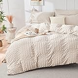 - ELEVATE YOUR BEDROOM COMFORT: Transform your sleeping space with the HYMOKEGE King Size Comforter Set; this 7-piece set seamlessly combines style and comfort, featuring a soft seersucker texture that adds a touch of elegance to any decor; the plush microfiber filling offers year-round coziness, ensuring restful sleep in any season; easy to care for, this bed in a bag set includes a comforter, fitted sheet, flat sheet, pillowcases, and shams—all in a coordinated beige design; machine washable for effortless care, it’s the perfect blend of luxury and practicality for your home