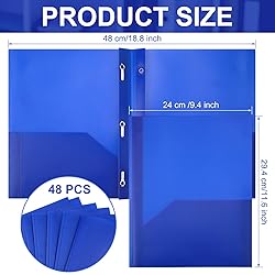 Stay Organized with Ease: the folders offer 2 pockets and 3 prong fasteners for convenient organization of documents; They are suitable for keeping important papers and files organized at office or home; The business card slot also helps to keep important contacts handy Reliable Quality PP Material: the folders with pockets are made of quality PP material that ensures durability and long lasting use; The distinctive color adds a professional and stylish touch to the folders, making them ideal for use in any environment Suitable Size for Documents: with a size of about 9.5 x 11.5 inches, the file folders are ideal for holding letter sized documents; Whether it be papers or work presentations, these folders have got you covered Sufficient Quantity: the package includes a total of 48 folders with pockets, providing a sufficient quantity for various organizational needs; These folders are appropriate for use in large offices, or other group settings Suitable for Various Places: the plastic folders with pockets and prongs are ideal for use in various settings, such as offices, and homes; They are ideal for office workers, and anyone else in need of an organizational tool to keep track of documents