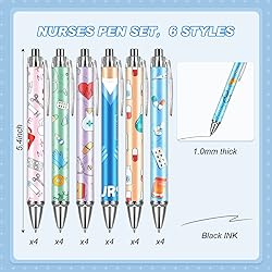 Abundant Quantity: your package contains 50 pieces nursing pens for nurses, including different patterns; Sufficient quantity and various colors can satisfy your daily writing and replacement needs, you can also share them with nurse assistants, students and colleagues Nurse Theme Ballpoint Pens: funny nurse pens are printed with different nurse themed designs, funny and novel; You can rotate the pen body to appreciate these cute designs, and you can use them as gifts to show your appreciation, or keep them as souvenirs Easy to Carry: nurses week pens you will receive measure approx. 5.4 inches in length, compact and lightweight, convenient to carry and store, will not occupy too much space, are nice companion to work Many Applicable Occasions: these thank you nurse pens are appropriate for doctors, nurses, nurse assistants, students, volunteers and others, they can be applied for Doctor's Day, nurse's Day, colleague party, nurse student graduation party, etc., as gifts to create some good memories Smooth Writing Experience: the nurse gifts pen is made of quality plastic material, sturdy and trusty, not easy to break or deform, suitable for daily usage; The quality 1.0 mm black ink allows comfortable and smooth writing, the retractable design makes it convenient for you to use whenever you want