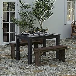 - Bring rustic charm to your dining room with the Merrick Lane Jessamine Farm Table. Made from solid pine, this dining table features a 1" thick plank top and 4" apron for strong, long-lasting support. The antique finish adds farmhouse style, ideal for family meals and gatherings. Use without linens for a casual look or add a tablecloth for weddings and showers. While designed for indoor use, this wooden kitchen table can be used outdoors in fair weather for events like barbecues or reunions. Perfect for any occasion, this country-rustic dining room table comfortably seats up to four adults.