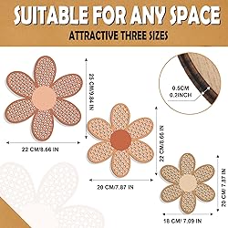 Daisy Wall Decor Set of 3: what you will receive are 3 pieces of boho nursery decor in different sizes, designed in a unified daisy patterns in the theme of boho style; Enough quantities and various sizes can basically meet your interior decoration needs and satisfy your personal preferences Trustworthy to Apply: our daisy boho wall decor is mainly made of quality wood material with exquisite workmanship and well polishing, safe and odorless, reliable and sturdy, no wood chips, not easy to wear, deform or break, clear and neat carving makes it look delicate even after long use Available 3 Sizes: the modern farmhouse decor set has 3 available sizes, measuring approx. 9.84 x 8.66 x 0.2 inches, approx. 8.66 x 7.87 x 0.2 inches and approx. 7.87 x 7.09 x 0.2 inches respectively, easy to attract your guests' attention at first sight and present an elegant visual effect Boho Style Daisy: as you can see in the pictures, each rustic home decor for bedroom comes in the shape of a daisy with large petals and round stamens, and is embellished with woven rattan textures, full of abstract beauty, matching well with other style decorations and showing artistic taste Widely Applicable: the kitchen wall decorations for home can be hung wherever you want to decorate, especially on your interior walls; Besides, they are applicable for living room, bedroom, nursery, study room, kitchen, apartment, dormitory, porch, office, restaurant, etc., adding a boho charm