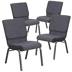 EMMA + OLIVER 4 Pack 18.5" W Stacking Church Chair in Dark Gray Fabric - Silver Vein Frame