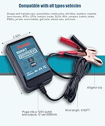 Aowel 12V, 2-Amp Fully Automatic Battery Charger & Maintainer for Car, Lawn Mower, ATV, Motorcycle, Boat, Marine Lithium(LifePO4) and AGM, Deep Cycle Lead-Acid Batteries