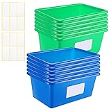 - Features: There are 12 pieces of small plastic bins with 15 pieces of self adhesive labels, enough for your daily storage use, and the lightweight material makes them easy to move, bringing much convenience to your life. Our book bins for classroom can help students to clean their books and other things, making their desks look cleaner and tidier, and they can write their name on the labels to show their ownership. Specifications: Material: plastic Color: blue, green Size: about 11.5 x 7.5 x 5 inches Package includes: 12 x Plastic bins Notes: Manual measurement, please allow slight errors on size. The color may exist a slight difference due to different screen displays.