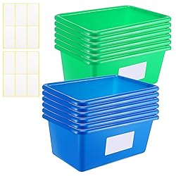 Specific Information: there are 12 small plastic bins in the package, and there are 2 different colors, blue and green, with a pack of self adhesive label for you to identify the bins, a sufficient quantity to meet your daily use and the colors are suitable for both men and women Reliable Material: the colored cubby storage bins are made of plastic, sturdy and waterproof, not easy to break, which is serviceable to help you organize your items, and the size of each bin is about 11.5 x 7.5 x 5 inches, deep enough for storage Stackable Design: our multi purpose plastic bins for storage are lightweight and stackable, easy to move, so you can stack several bins for saving space, convenient and practical Convenient to Use: the plastic bins for organization are suitable for storing your clothes, files and toys, and the labels can be applied for you to mark each storage bin, bringing much convenience to you, so you can find what you want quickly Wide Application: these colorful storage bins are multipurpose, they can not only be applied for toy storage, snack storage and clothes storage at home, but also work as file containers at office and books bins in the classroom, suitable for children and adults to organize their items