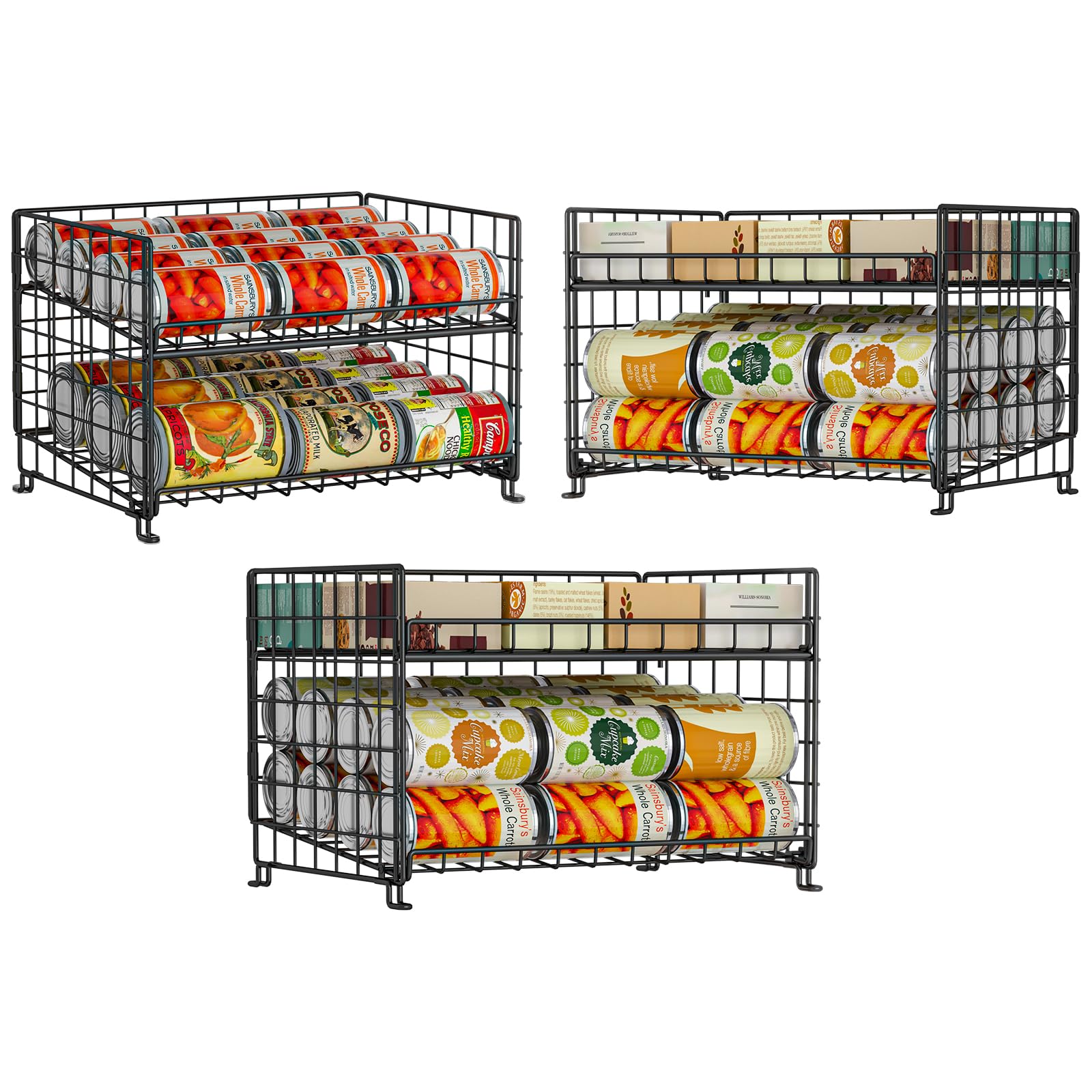【STACKABLE】Our stackable can storage includes 2 metal connectors, which can be stacked or used separately according to the space of the kitchen cabinet or pantry, maximizing the use of limited space. Diversified use scenarios to give you more possibilities for your kitchen cabinets or pantry. 【LARGE CAPACITY】The large capacity of the 4-tier pantry can organizer more cans, keeping your kitchen cabinets, pantry, and countertops clean and tidy. Meanwhile, the can storage dispenser can be adjusted, you can adjust the interval and angle according to the actual situation, which can perfectly accommodate different size cans or other food to meet all your needs! 【TILT DESIGN】Our stackable can dispenser has adjustable tilting design. When you put cans or drinks, take out the front can, the next can will roll to the front, which is very convenient to take out of your cans or drinks. Neat and easy to use! 【STURDY AND DURABLE】Our can storage organizer is made of strong iron material, the iron wires on the peripheral edges are thickened, and divider mesh is fixed with screws for sturdiness and durability. Can holders for pantry can withstand the heavy cans and not easy to bend and collapse. 【TOP QUALITY】Our stackable can rack is made of top-quality materials, which are firm and not easily deformed. Simultaneously, canned food holder have non-slip foot pad design, which is stable and non-slip, effectively protecting your countertop.