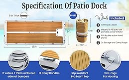 LARGE, STURDY WATER PLATFORM: This 15ft dock holds over 2000 lbs capacity for 10+ people, making it ideal for family gatherings or group water activities; our lake float is made for lounging, sunbathing, or enjoying water sports with friends SECURE, COMFY FOOTING: Our inflatable boat dock has non-slip EVA foam, providing secure footing in wet conditions; these floating docks for lakes are made for all ages, offering comfort and stability during swimming, relaxing, or playing on the water BUILT FOR LONG-LASTING ADVENTURES: This blow-up floating dock is made from Heat-welded PVC with a reinforced 1000-denier rip-resistant fabric layer; UV- and oil-stain-resistant drop-stitch construction for extra strength; our boat float can withstand rough water conditions and provide years of reliable use EFFORTLESS SETUP & STORAGE: Includes dock accessories such as an electric inflator for quick inflation and a backup hand pump; the inflatable dock platform rolls up compactly for easy transport and storage, so you can take it on all your adventures VERSATILE AND MULTIPURPOSE: Use the dock floats as a swimming platform, for lounging by the lake, or relaxing with family and friends on the water; our inflatable dock floating platform is ideal for enjoying outdoor water activities or sunbathing