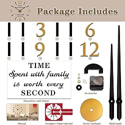 EASY TO INSTALL: The home decor wall clock comes with self-adhesive numbers and an auxiliary scale ruler, making installation a breeze. Plus, we've included an installation video for your reference, so you can enjoy the DIY fun of making your own unique house decorations for your living room with ease. MODERN DESIGN: This black gold clock is not only functional for telling time, but also an excellent solution for blank walls. Its modern design is perfect as a wall decoration for your living room, adding a touch of style and sophistication to your space. ADJUSTABLE SIZE: With its frameless design, our stick on wall clock can easily be extended or reduced in diameter to fit different sizes of walls. This means you can customize the size of your clock to perfectly fit your space. CLEAR TO READ: The living room clock features 3D large numbers, making it easy to read from a distance. Its minimalist frameless shape gives it a timeless appearance, ensuring it will never go out of style. PERFECT GIFT: VANGOLD decorative wall clock is a great idea for decorating restaurants, offices, hotels, living rooms, bedrooms, and even as fireplace decor. It comes equipped with exquisite packaging, the oversized wall clock is a wonderful holiday gift or housewarming gift for family and friends.