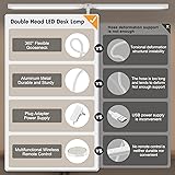 Versatile Desk Lamp: This double-headed LED desk lamp features a wireless remote control, allowing you to adjust 5 brightness levels and 5 color temperatures (3000K-5500K) with 25 light combinations to suit your needs. It also has memory and timer functions. Flexible Design: The lamp boasts a 360° standing and 180° foldable swing arms, enabling you to position the dual lamp heads at any angle for optimal lighting coverage. The adjustable metal clamp securely attaches to desks up to 2 inches thick. Eye-Friendly Lighting: With uniform illumination, no glare, no flicker, and no blue light hazards, this LED desk lamp helps reduce eye strain caused by prolonged screen exposure, making it ideal for various tasks like working, reading, studying, or crafting. Durable and Energy-Efficient: Constructed with high-quality aluminum alloy and featuring good heat dissipation, this desk lamp offers a long service life, energy savings, and low maintenance. Note: If your remote control isn't working, for a free replacement—no return needed.