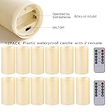 12PACK Waterproof Flameless Candles with Remote Control Candle, Battery Operated Flickering LED Pillar Candle Plastic,Large Size(D3 x H5.5) for Outdoor/Indoor Decoration Wedding, Party, Birthday