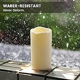 - waterproof These outdoor Led candles are made of high-quality waterproof waxy resin. The embedded flame blends perfectly with the candle. Don't worry about rain. Flame simulation technology causes candles to flicker. Very suitable for indoor and outdoor use as they can withstand wind and rain.