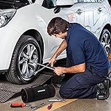 Premium Material: The exterior of this sturdy and rip-resistant tool roll is made from 720D polyester with reinforced stitching, which can withstand regular use and protect the tools inside. Organize, store, and transport your tools and accessories in the high-performance WORKPRO tool roll bag Multiple Pockets: This tool roll bag features 6 pockets that organize various tools efficiently. Four large 13" x 3-3/4" pockets to accommodate screwdrivers, wrenches, sockets, hammers, and pliers, and two 6-9/16" x 4-5/8" detachable tool pouches with D loops for small items like drill bits, screws, and spare parts Secure Closure: Each roll tool bag pocket has a sturdy zipper to prevent tools from falling out during transport. When you roll up or fold this tool bag, two adjustable side straps with buckles help secure your tools in place Portable Design: The tool bag can be rolled up to a compact size and is equipped with comfortable handles that make it easy to carry around, which is helpful for professionals who need to bring their tools with them to different job sites. The hanging loops around the handles allow you to hang the roll-up tool bag organizer in your car, garage, or workshop. 22" high x 14" wide unrolled Versatile Usage: This tool roll-up bag can be used for a variety of tasks and jobs, from DIY projects at home to professional construction work. It is convenient to keep your tools organized and accessible, wherever you go