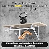 Pole support brackets are made from high quality steel, include portions for supporting both a rod and shelf, white finish, durable, sturdiness and long-lasting use Versatile shelf and rod support maximum load is 250 lbs per pair. Depth wall shelf and rod brackets are designed by triangular structure, provide good stability We recommend using a 24-inch length of board for each pair of brackets. If your boards are longer, we suggest increasing the number of brackets to ensure proper support 11" x 9.5" rod support brace come with mounting screws hardware, so installation is quick and easy. Package include 2 pack hang rod support brackets, each bracket with 4 pcs screws Floating brackets used closet shelf and rod bracket, help create more space of wall for storage or display in any room. Suitable for small places and make it tidier, is compatible with wood, plastic and metal Our closet rod brackets are suitable for use in various settings, such as kitchens, garages, basements, storage rooms, stores, offices, and factories, and can even be used for bookshelves or exhibition stands Closet Rod Bracket Size: L11 in x H9.57 in x W0.98 in with a hook to hang into closet rods up to 1-3/8 in Screw usage recommendations: Use short screws for wooden boards and long screws for walls