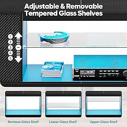 【PS5 Gaming Entertainment Center】Bestier gaming TV stand is designed for elevate your ultimate gaming experience, meticulously designed for the ultimate gaming setup. Featuring side cabinets and open storage measuring 13.3"W x 17.5"H, this custom-built open shelving is the ideal space to house your PS5,PS4, game controllers, Xbox, switches, and all your gaming essentials. It caters to diverse storage requirements while ensuring the utmost privacy for your valuable items. 【Adjustable Glass Shelves】Elevate your home entertainment experience with our modern and stylish 57-inch entertainment center! It comes equipped with a high-strength, adjustable middle glass shelf that allows you to customize the setup according to your preferences and needs. With 5 different height options, this versatile feature is perfect for personalized storage and organization, catering to all your diverse requirements. 【Colorful Lights, Endless Joy】Enjoy the joy and wonder brought by our TV stand with LED light strips as it brightens up your home and infuses it with warmth and happiness. It's not just a piece of furniture; it's a magical addition that creates cherished memories for you and your family. Upgrade your home entertainment today and bask in the enchantment of our captivating TV stand! 【Sleek Gaming-inspired Design】Bestier tv stand for living room accommodates large 40,55,65 inch TVs with ease, Inspired by the gaming world, this TV media stand boasts a sleek design combined with multifunctional features, seamlessly integrating with your home decor. Whether you prefer modern minimalism or timeless classics, it effortlessly complements your interior, creating a cozy and stylish entertainment space. 【Effortless Assembly with Warranty】Upgrade your home entertainment with our user-friendly TV stand! We've crafted simple installation steps that can be easily assembled by two people. On top of that, we offer a full year of warranty, so you can reach out to us anytime for assistance or inquiries. Enjoy peace of mind knowing we've got you covered every step of the way! Don't wait! Choose our TV stand now and take your entertainment experience!