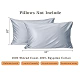 1000 Thread Count Cotton Pillow Cases Cal King Size Set of 2, 100% Egyptian Cotton Sateen Weave Pillowcases,Envelope Closure Pillow Cover Silk Soft Breathable(Grey Cal King)