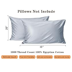 1000 Thread Count Cotton Pillow Cases: Our 1000 thread count pillow Using high count combed cotton yarns for weaving, the density far exceeds that of ordinary pillowcases . The fabric is silky smooth and flowing like real silk, instantly releasing a comfortable sleeping experience. Every time you turn over, it feels like a gentle touch from the clouds, making the sleeping ceremony full of luxury and comfort. Breathable & Cool Fabric:Double sided breathable. Sweating late at night? It doesn't exist! The air circulates freely between the yarns, keeping them dry and cool all night long, especially suitable for those who are prone to sweating and require constant temperature throughout the year. Durable & Easy to Care. Our luxurious pillow cases are strong and durable and do not fade or shrink even after multiple washes. These pillow covers retain softness and smoothness wash after wash, so you can enjoy their luxury for a longer time Hypoallergenic. From the fabric to the thread and accessories, our pillowcases have been scientifically tested.These pilllowcases are safer choice for your health and preferred material for kids and anyone with sensitive skin Cal King Pillowcases Set: Includes 2 Pillowcases: 20 "W x 40" L