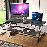 Mount-It! Electric Standing Desk Converter with 38" Tabletop, Height Adjustable Sit Stand Desk Riser, Motorized Desk Riser with Keyboard Tray and Device Slot, Fits Monitor & Laptop, Black