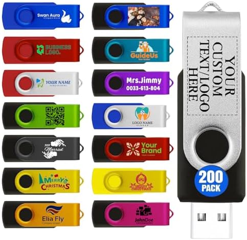 Custom USB Flash Drive 4GB 200 Pack Promotional Product Customized USB Thumb Drive,Customizable USB Drive Personalized with Your Logo Bulk USB 2.0 Personalized USB Stick 200pcs Multiple Color Choice