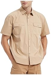 Tronjori Men's Short Sleeve Button Down Casual Woven Shirt Two Chest Pockets