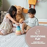 Play Platoon Wooden Rainbow Stacking Toy Ring Stacker, Educational Interactive Learning Toys, Create Stacks of Circles for Kids, Babies, Toddlers and Children