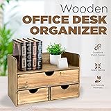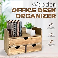 - Looking to keep your office desktop clutter-free? A well-organized desktop helps you get work done faster. You’ll know just where to find your post-its, pens, and notepads. Plus, the absence of clutter allows your mind to gain more clarity. The key to staying organized is to never allow mess to build up. However, staying tidy is more challenging in reality. After all, no employee has time to spend hours clearing out their desk everyday. The best way to prevent clutter is to have a dedicated place for every item on your desk. The Wooden Office Desk Organizer by Besti offers a stylish way to stay organized. Equipped with a top shelf, one large drawer, and two smaller compartments, our desktop organizer has enough partitions to store your office supplies. You can have a dedicated space for your pens, markers, scissors, and another for your post-its, notepads and mail. Add decorative items and plants on the top shelf to bring your own personal style into the workplace. With separate compartments keeping your supplies organized, finding just the item you need will be easier. Not only will you be able to make efficient use of your time, you’ll look professional as well. Be amazed by how much calmer you'll feel with everything you need just a drawer away. The best part is that our organizer is as stunning as it is functional. A vintage piece, our wooden unit brings a quaint, country charm to any space. It offers a great way to break the monotony of typical, boring office furniture. Here are more reasons to love our wooden office desktop organizer: ✅ Blends easily with existing decor ✅ Extremely durable wooden material ✅ Sturdy enough to carry heavy items Choose a stylish and practical way to stay organized. Add the Wooden Office Desk Organizer by Besti to your cart TODAY!