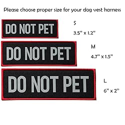 - FITZNORA 2 Pack Dog Patches for Harness Vest.These highly reflective patches make it clear that your furry friend is not a pet. By maintaining a distance, people will be less likely to approach and disturb you during walks. These service dog patches come with HOOK and LOOP fastener backing. It's easy to attach them to your dog harness or vest, and they are removable and interchangeable. Suitable for S-M-L-XL-XXL size animal vests and harnesses, please choose proper size option.Please use them according to local laws for service animals.