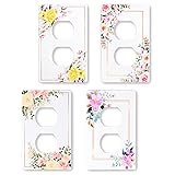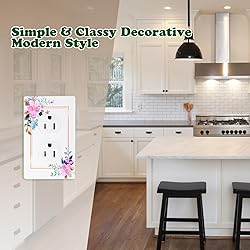 【Screw-less Surface Style Products】: The screws are cleverly hidden behind the wall plate. The wall plates outlet covers design inspired by floral patterns. 4 Different floral patterns on the wall plates. The white finish coordinates with white outlets, switches, and trim for a bright, clean look. 【Wide Applications】 : Simple, clean, elegant design combined with white wall plates cover, add a decorative accent to your living space, suitable for decoration in various places such as homes, offices, shopping malls, schools, etc. Updating your wall plates is a good choice. 【High Quality Materials 】: Made of polycarbonate thermoplastic material to provide durability, flexibility, and resilience to withstand hard impacts and heavy force, fade-resistant design for long use. Perfect for anyone doing a quick DIY project. 【Package Include】 : 4 Pack 1-gang Duplex switch plate covers with matching screws. Standards size 4.7 x 2.9 inch. Easy to install and remove without the need for solderin Upgrade your walls with our decorative screwless wall plates. Fancy wall plates is a great way to add some personality and style to your home or office. Available in different floral patterns with multiple designs. Whether you're looking for light switch covers, rocker plates for your bedroom, living room, or home office, we've got you covered (Single Decorator, Single Duplex, Single Toggle)
