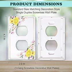 - Looking for an easy way to update the look of your home or office, without having to spend a fortune on costly renovations? Look no further than our modern decorative white 1-gang wall plates. The wall plates outlet covers is inspired by the floral patterns. Designed to effortlessly blend in with any decor style, these wall plates provide an instant facelift to your switches and electrical outlets. Our products include single decorator, single duplex, single toggle options, ensuring that you can find the perfect match for your needs. We also offer a variety of faceplate sizes, including mid-size and full-size options, to fit a variety of wall outlet configurations. Made from high-quality materials, each of our wall plates is built to last for years to come. They are designed to fit standard outlets and switches while providing a sleek, modern look to any room. The decorative finish gives it a touch of elegance, while still maintaining a minimalist aesthetic to complement your home's style. Our decorative fancy wall socket faceplates come in a variety of designs to suit all tastes including Light switch, toggle, and electrical outlet covers. They are perfect for use in living rooms, bedrooms, offices, and other areas where there may be a need for multiple electrical outlets close to each other. With their easy installation process, you can replace your existing wall plates within minutes and give your space a completely new vibe. Upgrade to our screwless decorative white 1-gang wall plates today and enjoy the added beauty and functionality they bring to your home or office. Specification: Color : White Shape : Rectangle Standards Size : 4.7 x 2.9 inch Package Content: 4 Pack 1-gang single Duplex screwless wall plates covers Mounting Screws