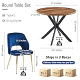 NORDICANA 5-Piece Dining Table Set for 4 - Space Saving 37-Inch Round Table and Chairs, 4 Seaters Dining Set with Upholstered Dining Chairs (Navy Blue)