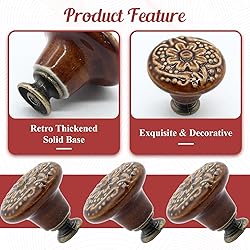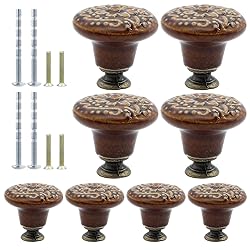 - Ceramic knobs for cabinets and drawers are practical pull handles and vintage decorations for closet, wardrobe, drawer, dresser, shelf and furniture door knobs. Specifications: Cabinet Knobs Top Diameter: 1.3"/34mm Decorative Door Knobs Height: 1.18"/30mm Bottom Diameter: 0.55"/14mm Screws for Each Pull Handles: M4 x 46mm, M4 x 25mm Material: Ceramic Color: Brown Quantity: 8 Pieces Note: Due to manual measurement, please allow a deviation of 1 - 2mm. Please check our product size carefully and read the product size descriptions before purchasing to avoid possible unpleasant shopping experience.