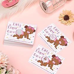 - Features: Cute baby diaper design: The diaper shower decorations are designed with interesting words and adorable patterns of the baby, star, stripe, diaper, poop and more, which will easily attract your guests' attention. Funny gift choice: With exquisite craftsmanship and attractive appearance, the funny baby shower decorations are considered as ideal presents for your family members, neighbors, colleagues, etc., which will gain their affection. Specifications: Material: art paper Color: as pictures shown Size: Scratch off cards: about 6.6 x 9 cm/ 2.6 x 3.5 inches Scratch off stickers: about 2 cm/ 0.8 inch in diameter Package includes: 60 x Scratch off cards 60 x Scratch off stickers Notes: Manual measurement, please allow slight errors on size. The color may exist a slight difference due to different screen displays. Small items are included, please keep them away from little kids in case of choking risk. Words printed on our products are only for decorating, not as trademarks, and our trademark is Geyee.