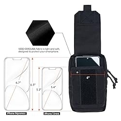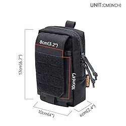 DURABLE MATERIAL : Molle pouch constituted by high quality and durable 500D Cordura Nylon, YKK Zippers ,suitable for dairy life and outdoor activities:travel, camping, hiking, hunting, fishing, storage gadgets. Size:6.7'' x 4'' X 2.4''(H*L*W) LARGE DOUBLE CAPACITY WITH MULTIPLE POCKETS: EDC Utility Pouch have one main zipper pocket, inner compartment, and mesh pocket, allow you storage small gadgets,cell phone, pen, keychain, medical supplies or any necessary gadgets you need. The front magic sticker closure phone pocket can be easily put into cell phone , Fit for various 4.7-6.7 inch smartphones , like iPhone 14/13/12/11/X /6 SERIES, Galaxy S21/S21+/S20/ S20 Plus/S10+, Galaxy Note 10+/Note 9/Note 8 FRONT LASER-CUT STYLE MOLLE: Molle tool pouch utilized the stackable laser cut front + loop material Molle platform for attaching additional MOLLE gear, or adding your favorite patches can make it more conspicuous and fashionable. TYPICAL MOLLE SYSTEM: Tactical molle pouch with Molle back straps can be attached to tactical backpack, tactical vest,battle belt, or other molle gears as an extra exterior pouch,like small EDC pouch, tactical molle bag, ifak pouch, tactical vest pouch, small tactical bag, military pouch, army pouch, gadget pouch, cellphone waist bag ,utility belt pouch. 100% Quality Warranty: Your satisfaction is our first priority, we take care of all quality-related issues with a REPLACEMENT OR REFUND with 90days; If you encounter any problem while using, never hesitate to send email to us and we will make it all right for you.