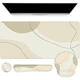 iCasso Large Gaming Mouse Pad Wrist Support Set, Desk Mat, 4in1 XXL Mousepad + Keyboard Wrist Rest+Mouse Wrist Rest+Coaster Set with Ergonomic Design for Home Office Table Computer-Brown Art