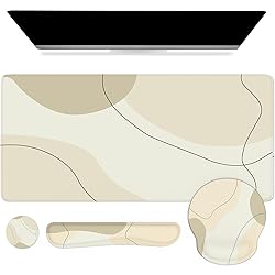 Large Mouse Pad Size: Extended mouse pad:35.4" x 15.7",wrist rest for computer keyboard:17.32" x 3.15" x 0.98",wrist rest for mouse:8.66" x 9.84" x 0.86",Coaster:3.93" x 3.93" Ergonomic Design: Ergonomic mouse pad with wrist rest fits the wrist, the keyboard wrist rest and mouse wrist rest can provide a good touch and effective support for your wrist, keep your wrist and hand relaxed Ultra-smooth Surface or Non-slip Base: With Comfortable Lycra Surface and Breathable Material to the desk pad. Making your mice glide on its surface effortlessly, which can provide optimum speed and accurate control during your working or gaming Water-resistant or Washable Surface: Long mouse pads for desk with a spill-proof coating makes liquids slide right off the surface. Effectively prevent damage from spilled drinks or other accidents. You can easily clean any dirt with a damp cloth Widely Usage: This combo can be used in many ways. The desk mats on top of desks can be used as a great desk organizer making your desktop neat. As a keyboard and mouse pad for you to gaming and work. As a home and office decor with a beautiful pattern