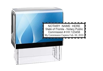 Notary public stamp for use in state of Florida Customized to be in statutory compliance Blue body; black-inked impressions Great for notarizing successive documents in large volume 5000+ impressions from each pad