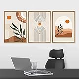 Framed Boho Wall Art Set of 3, Mid-Century Modern Wall Prints Framed Canvas Paintings Abstract Geometric Beige Orange Moon Plant Desert Nature Illustrations Artwork, Minimalist Boho Wall Decor for