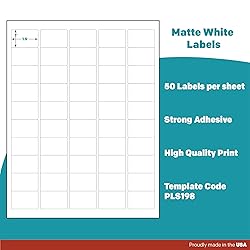 MULTIPURPOSE LABELS: This set of 1,250 (1.5” x 1”) labels is great for many uses such as; barcode labels, part number labels, and organizing your office and home supplies. STRONG SELF-ADHESIVE STICKERS: Our labels are made with a strong general-purpose permanent adhesive that aggressively holds to many different packages and surfaces. INKJET/LASER PRINTING: Labels sheets are standard letter size (8.5” x 11”) and are compatible with all laser and inkjet printers. SMUDGE PROOF: Prevent ink smears with our bright white customizable smudge-proof labels that give a professional appearance with each use. MADE IN USA: All of our premium labels are proudly made in the USA and are affordably priced to fulfill your home, office, and shipping needs.