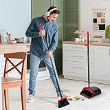 TreeLen Dust Pan and Broom/Dustpan Cleans Broom Combo with 52" Long Handle for Home Kitchen Room Office Lobby Floor Use Upright Stand Up Broom and Dustpan Set - Black/Red