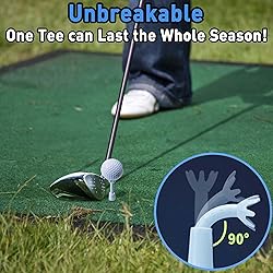 【Adjustable Height】Our adjustable golf tee heights range from 2.1" to 2.9". Fits all thicknesses of driving range mats on the market. Golf mat tees are your must-have golf bag accessory to solve the problem of fixed height tees that are too long or too short.You'll love the adjustable golf tees that bring extra consistency to your swing. 【Durable & Reusable】Unbreakable golf tees are made of high quality rubber and plastic composite for durability, so you don't have to keep replacing them like you do with traditional wood and plastic tees. Avoid a lot of broken tees on the driving range or simulator. 【Unique Tee Cup - Reduced Friction】The design of the tee cup head minimizes contact between the tee and the ball to maximize performance when hitting the ball, while less friction translates into more distance when you need it most. 【No need to pick up again】Tired of constantly bending over to pick up a downed tee? Our Driving Range Tee will remain firmly on the golf mat after each hit. Increase efficiency, save your energy, and give you a playing experience beyond your imagination. 【Essential Golf Accessories】Golf rubber tees for all driving range mats. Perfect for indoor and outdoor driving ranges and golf simulators. Works with most clubs including driver, woods and hybrids, making it a versatile and convenient choice for golfers of all levels.